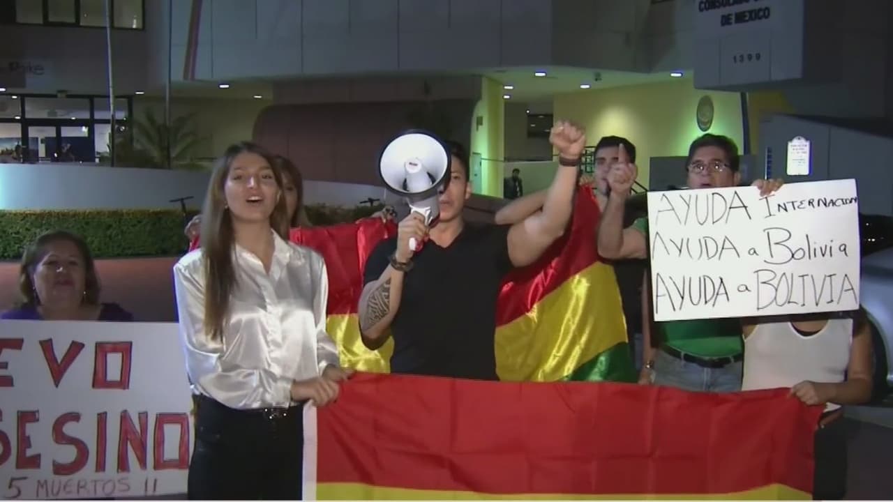 Bolivianos protestan frente al Consulado de México en el sur de Florida en contra del asilo a Evo Morales