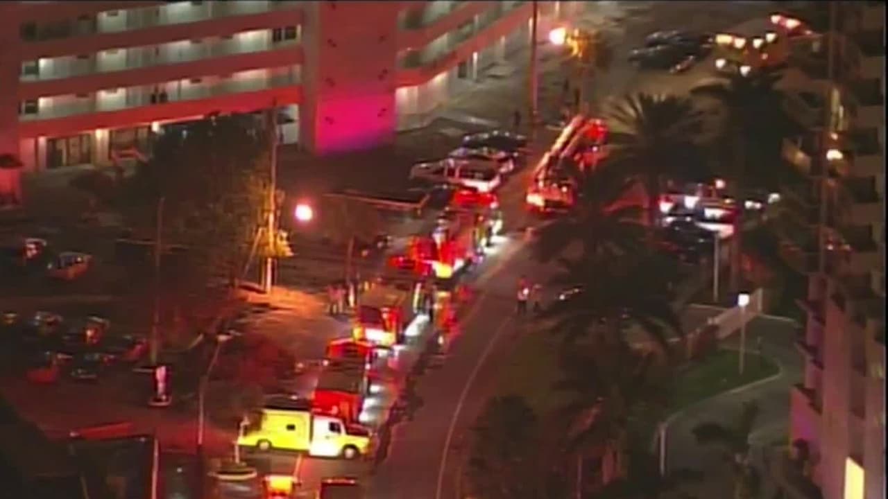Bomberos combaten el incendio en un edificio de Miami-Dade