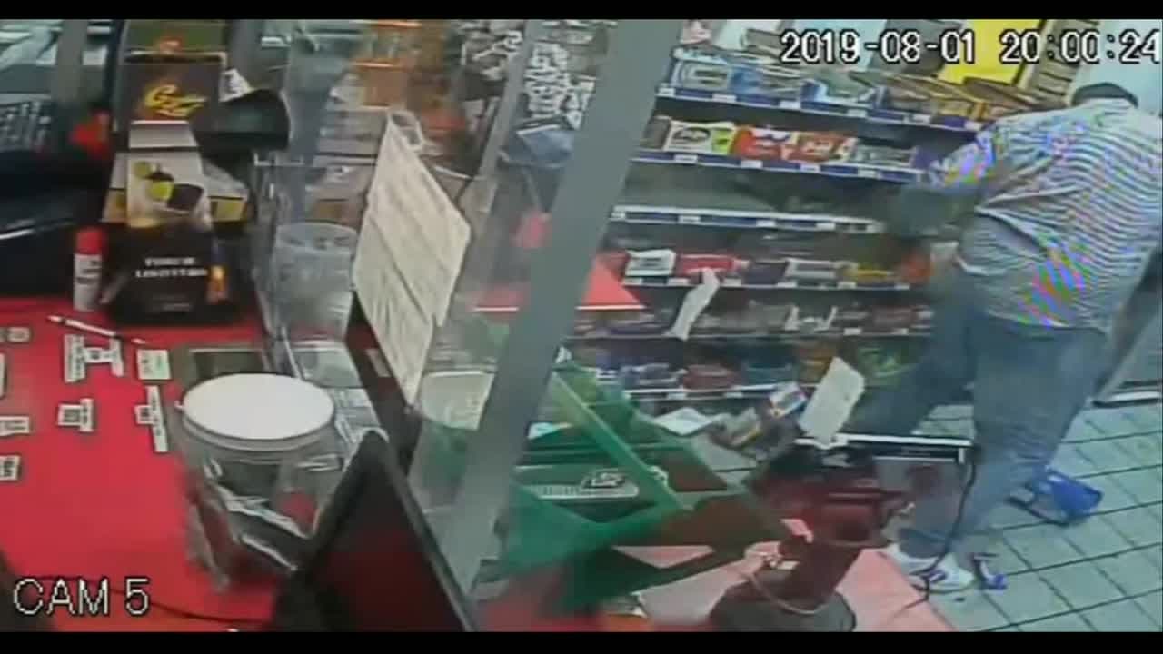 El sujeto, después de discutir con el encargado del lugar, derribó los anaqueles y tiró la mayoría de la mercancía al piso. Antes de irse, le dio una golpiza al vendedor y todo quedó captado en la cámara de vigilancia del lugar. La policía sospecha que el sujeto estaba embriagado cuando ingresó a la tienda