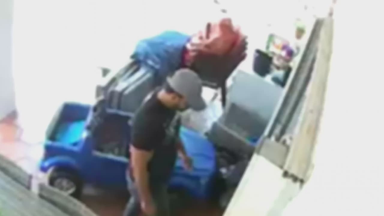 Cámaras de seguridad captaron el momento en el que el sospechoso se acerca a la vivienda e intenta ingresar a ella en repetidas ocasiones hasta que la alarma de seguridad suena y se da a la huida.