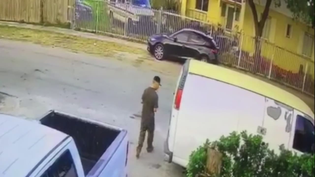 En video quedaron dos hombres mientras abrían la puerta del camión, después de revisar el área en Allapattah. La policía publicó las imágenes para que la comunidad dé información sobre los presuntos responsables del hurto.