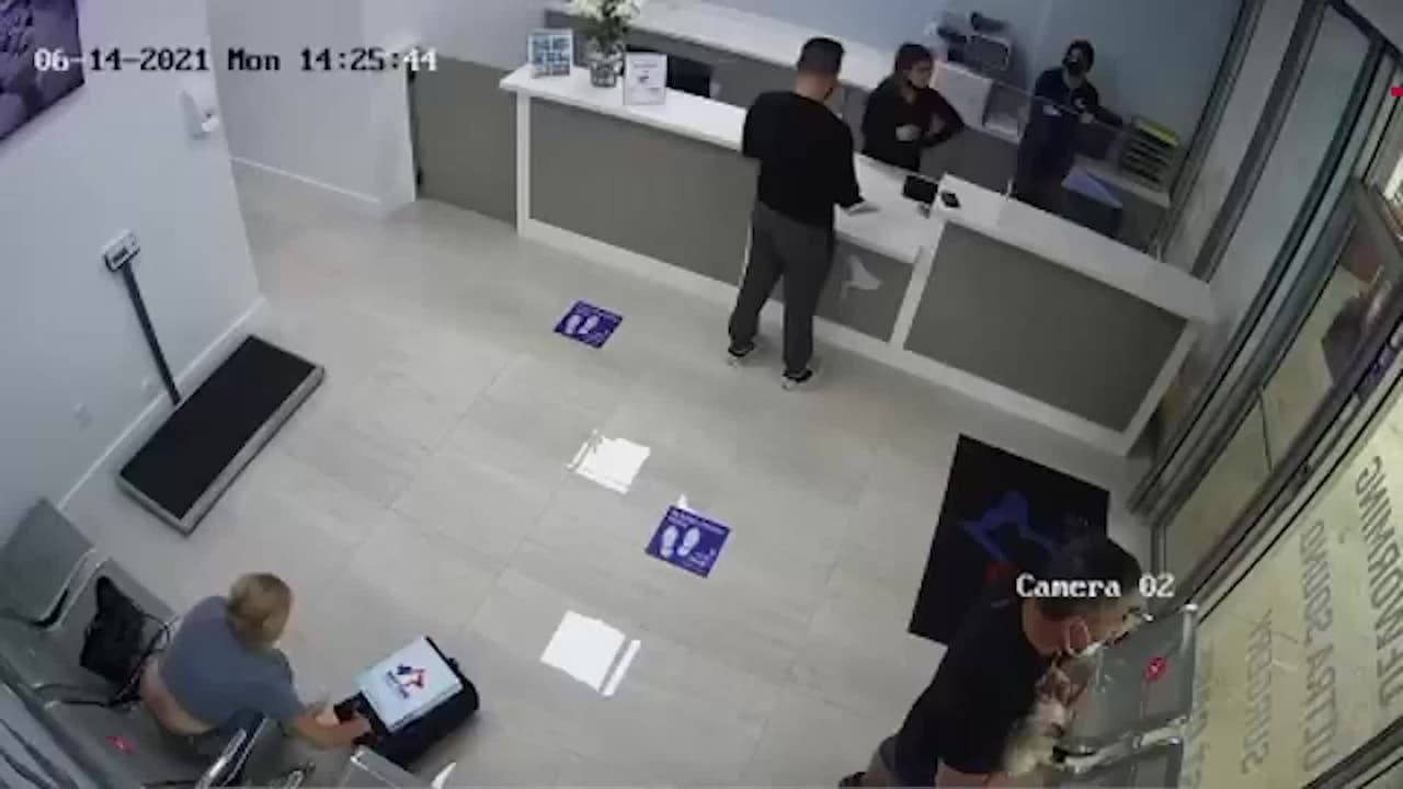 La cámara de vigilancia de la sala de espera del lugar muestra cuando una mujer abre el cierre y saca al animal del bolso de su dueño. Luego se lo mete dentro de su camisa y se va de la veterinaria. El propietario ofrece $1,000 de recompensa por información de su mascota.