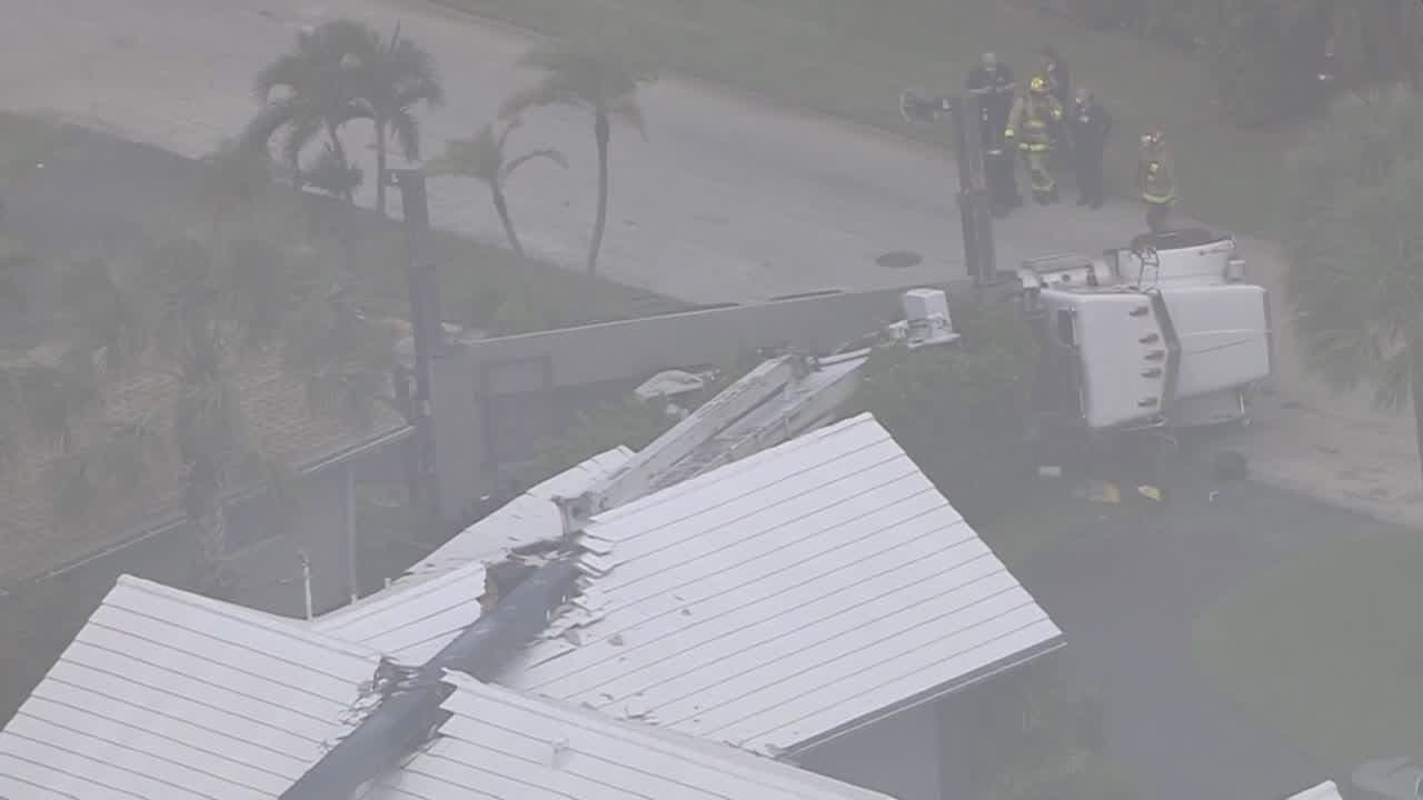 Los bomberos de Fort Lauderdale se encuentran en el 1920 del noreste y la 57 avenida, donde una grúa cayó sobre una casa.