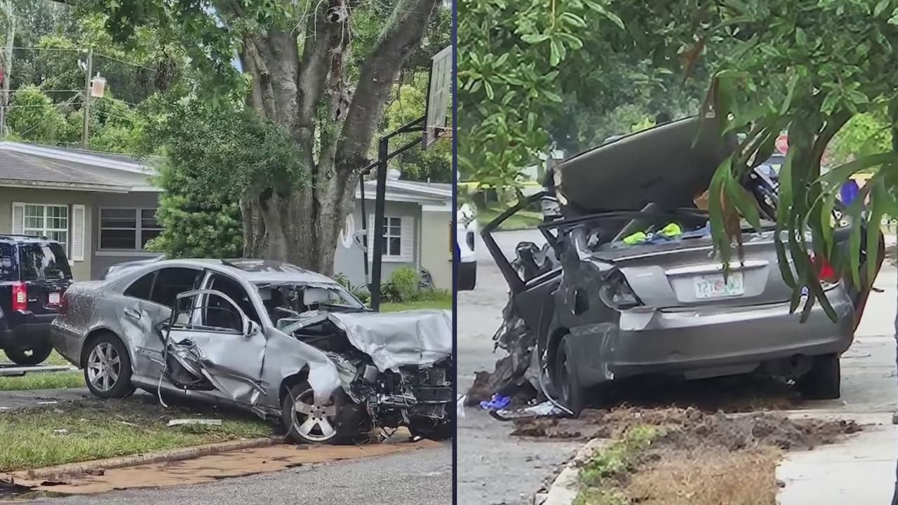 Revelan el video de una cámara de seguridad que muestra el momento en el que un auto impacta la parte lateral de otro vehículo en un vecindario, en el condado de Orange. Según las autoridades, el hecho dejó a dos personas hospitalizadas. Tras el siniestro, un habitante de la zona afirmó que uno de los automotores había sido robado "y terminó en mi patio".