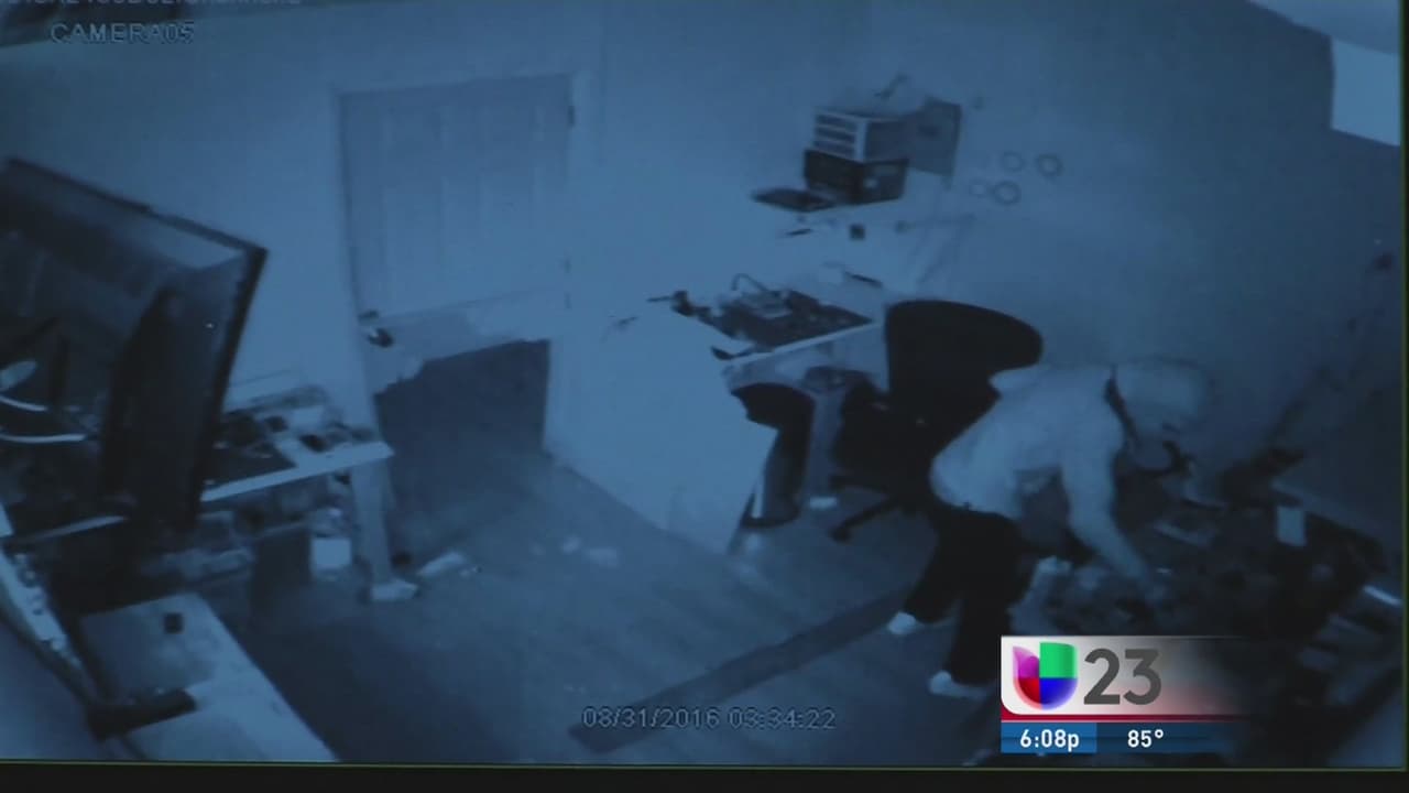 Las autoridades piden apoyo para identificar a un ladrón que ingresó a un establecimiento para extraer teléfonos celulares y tabletas.