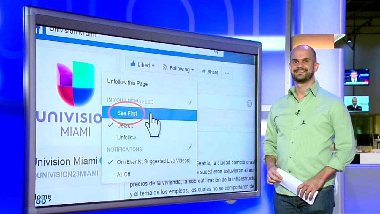 Daniel Lastra, jefe de redes sociales de Univision 23, explica que Facebook se enfoca en darle prioridad en el muro a los mensajes de tus contactos como seres queridos. Para no perderte alertas, noticias y videos de Univision 23 Miami, debes ir a nuestra cuenta en la red social y darle like, following y see first.