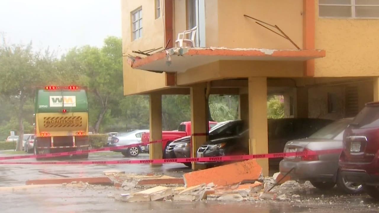 Un camión de basura impactó un balcón provocando el colapso de la estructura del edificio que está ubicado en el 525 de la Avenida 72 del Noreste del condado de Miami Dade.