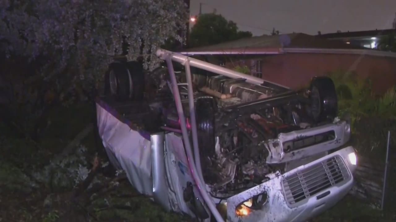 Camión de trabajo cayó de la autopista I-95 en la parte trasera de un edificio en Miami-Dade