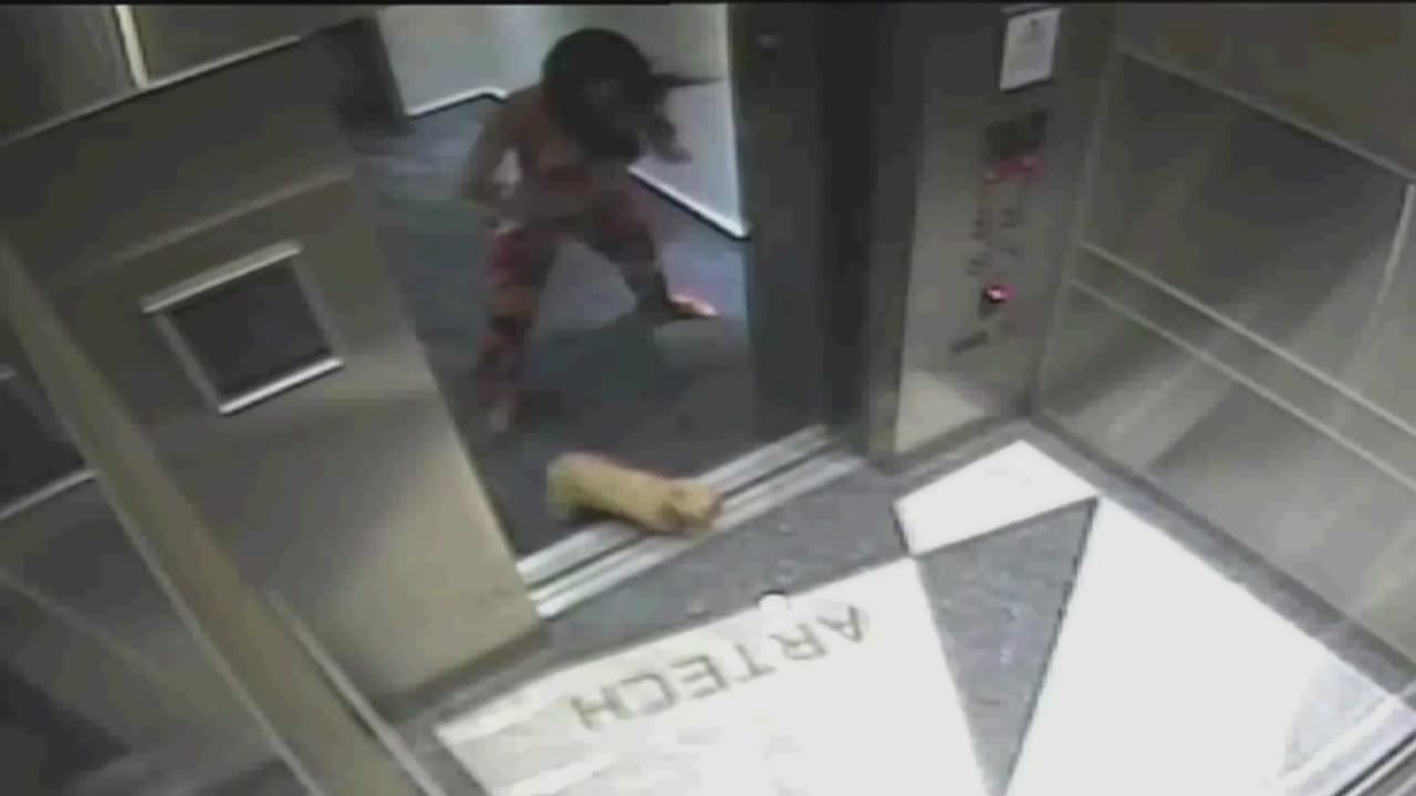 Captado en cámara: A patadas, mujer agredió a un perrito en un ascensor de Florida
