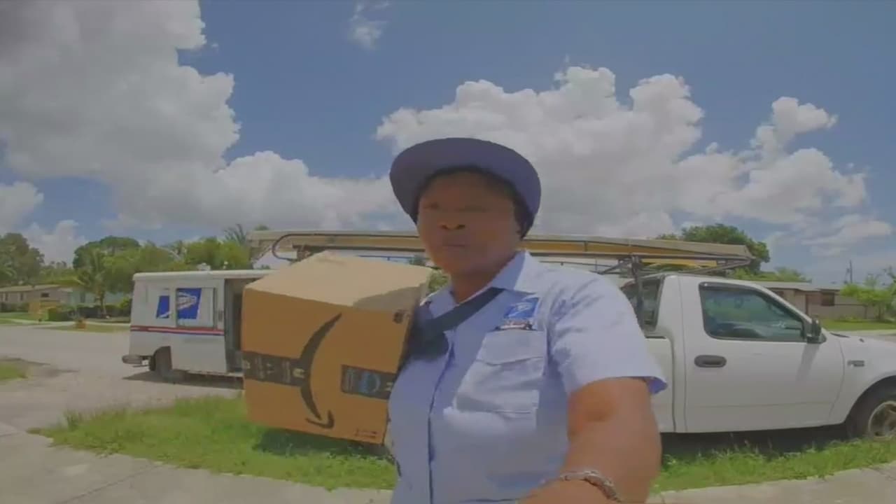 Captan a una empleada del Servicio Postal lanzando paquetes sobre la cerca en una casa en Florida