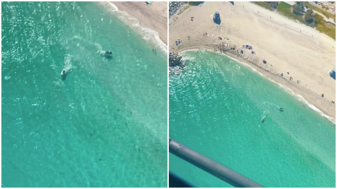 Un video publicado por la cuenta de Instagram southbeachhelicopters muestra lo que aparenta ser una considerable cantidad de tiburones cerca a las playas de Miami Beach, en el área de Haulover Beach.