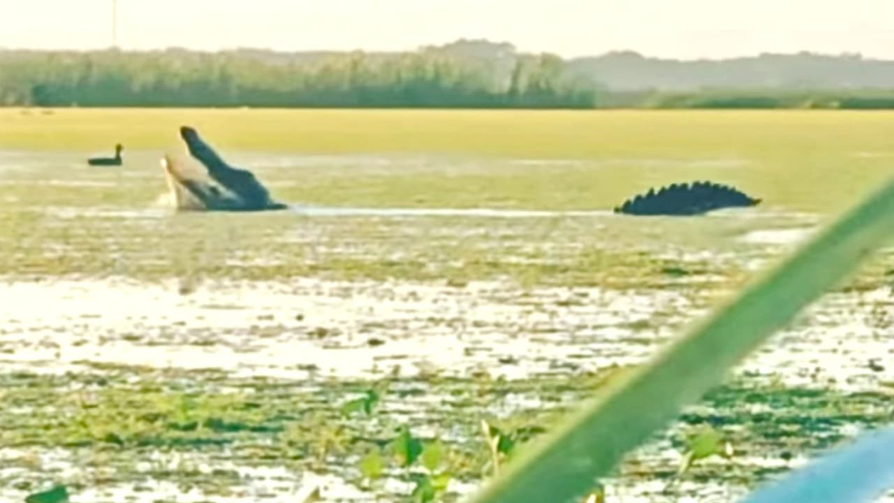 Los dueños de la App de caza Pro Hunt se encontraron un enorme cocodrilo cuando salieron a cazar patos en las afueras de la ciudad de Leesburg, en el centro de Florida.