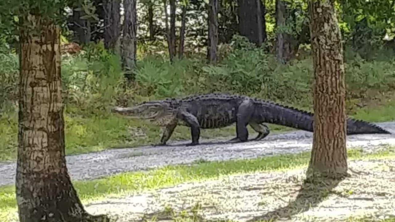 Woollery llamó a su vecina para advertirle que un caimán de 11 pies estaba merodeando por su hogar. Luego llamó a North Carolina Wildlife y a la policía.