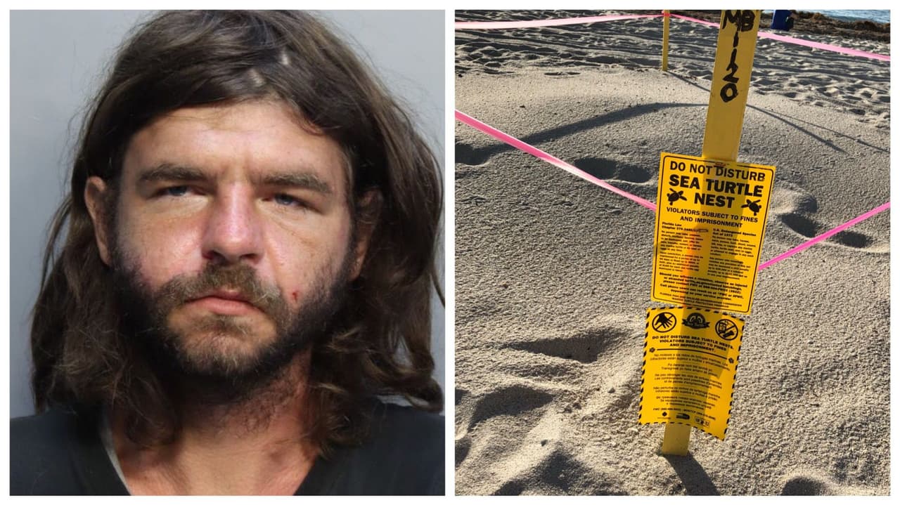 Brandon Bowen, de 33 años, fue arrestado el 4 de Julio acusado de dañar los nidos de las tortugas en Miami Beach, luego que varias personas lo vieron haciéndolo. La policía dijo que el sospechoso argumentó que "solo estaba sentado en la arena", pero hay letreros en español e inglés que advierten no pisar estas áreas.