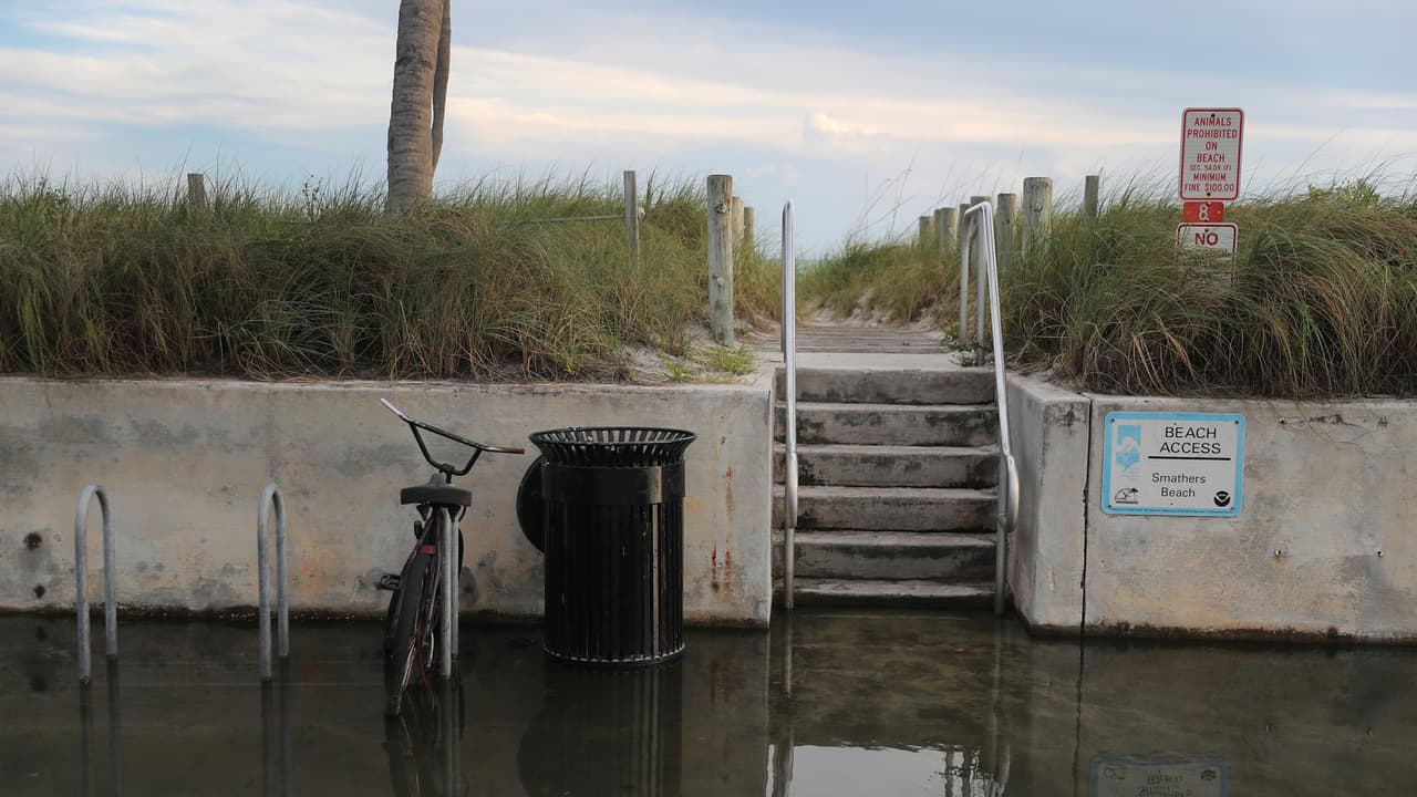 Esta zona estuvo bajo aviso de huracán y varios negocios se prepararon protegiendo sus puertas y ventanas, y pusieron bolsas de arena para evitar las inundaciones que se estaban esperando, pero no sucedieron.