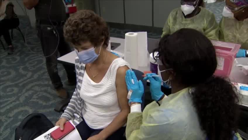 El centro de vacunación ubicado en el aeropuerto de Miami es para los empleados y pasajeros de Florida. Las personas deben vivir o trabajar en el estado para recibir la inyección.