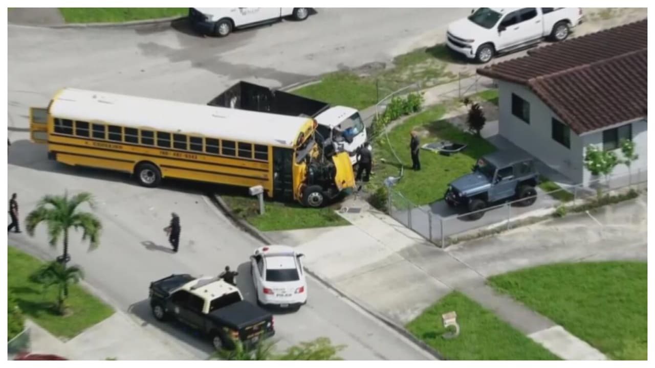 Al menos 3 niños hospitalizados tras choque de un autobús escolar y un camión en Hialeah