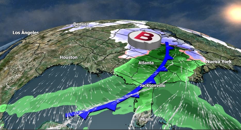 Una tormenta invernal sufrirá un proceso de bombogénesis y empujará aire ártico, muy frío, desde el norte, hasta el Golfo de México, llegando a Florida.
