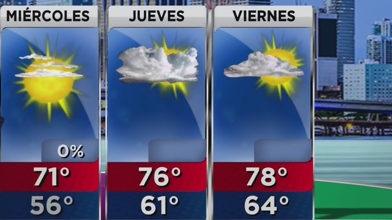 La temperatura máxima será de 71 grados, en un día mayormente soleado. No hay probabilidades de lluvia.