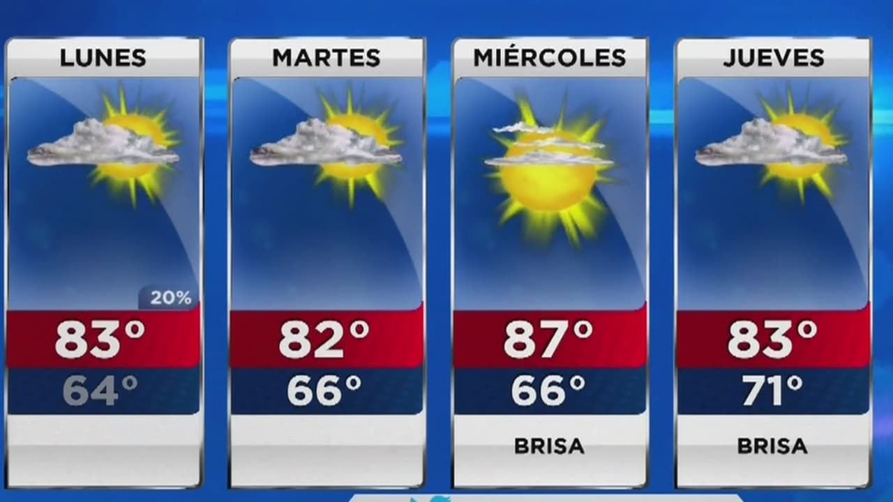 Durante el fin de semana se registró un sistema que bajó un poco las temperaturas, pero a partir de este lunes se comienzan a normalizar. La máxima de hoy será de 83 grados y se mantendrá la tendencia para el resto de la semana.