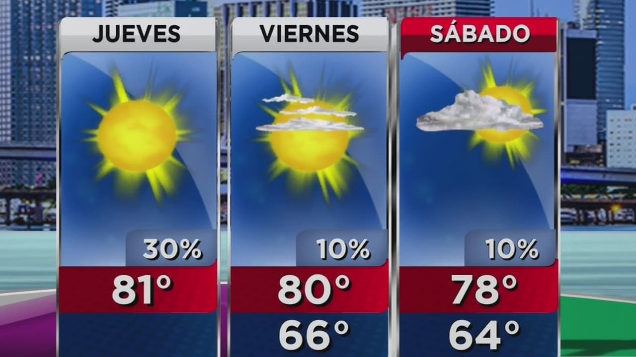Cielo mayormente despejado y probabilidad de chubascos aislados este jueves en Miami