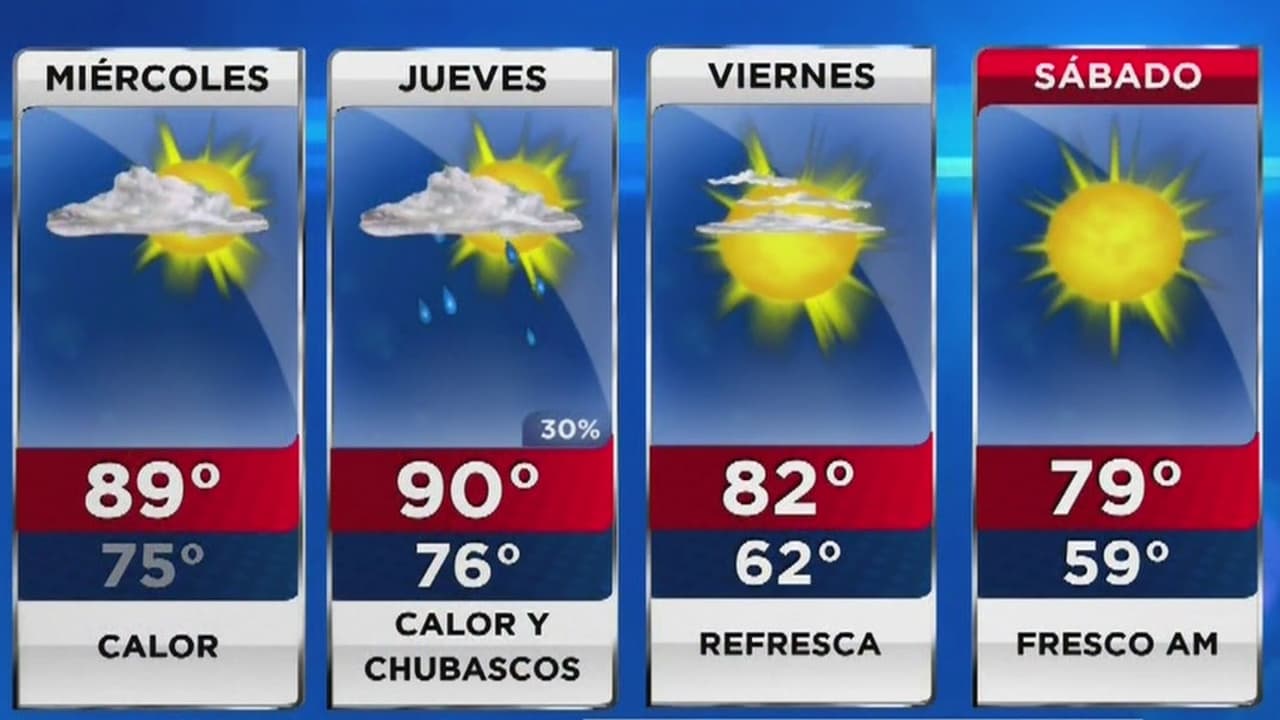 Durante este miércoles y jueves la temperatura en el sur de Florida va a estar alcanzando récords históricos. Hoy la máxima será de 89 grados y la mínima de 75 grados. Sin embargo, para el jueves se espera más calor, pero acompañado de chubascos ligeros.