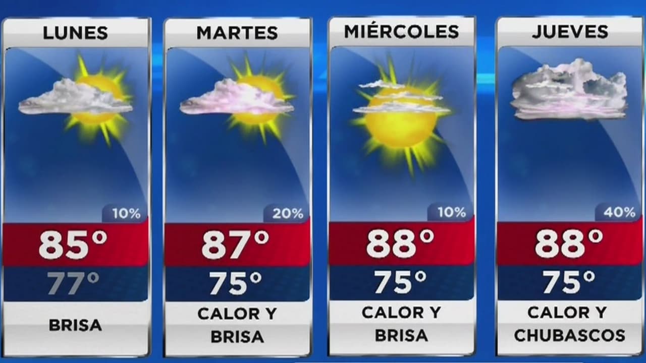 Un sistema ha dejado temperaturas altas en el sur de Florida, para hoy la máxima en Miami será de 85 grados y la mínima de 77 grados. También aumentan las probabilidades de lluvia, pero lo que predominará durante el día serán las brisas.