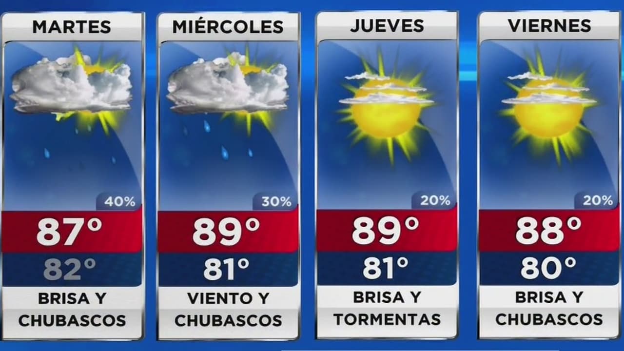 La lluvia no da tregua en Miami y el sur de Florida. La temperatura máxima será de 87 grados, y la mínima de 82 grados. Los próximos días subirá un poco la temperatura y disminuirá la intensidad de la lluvia.