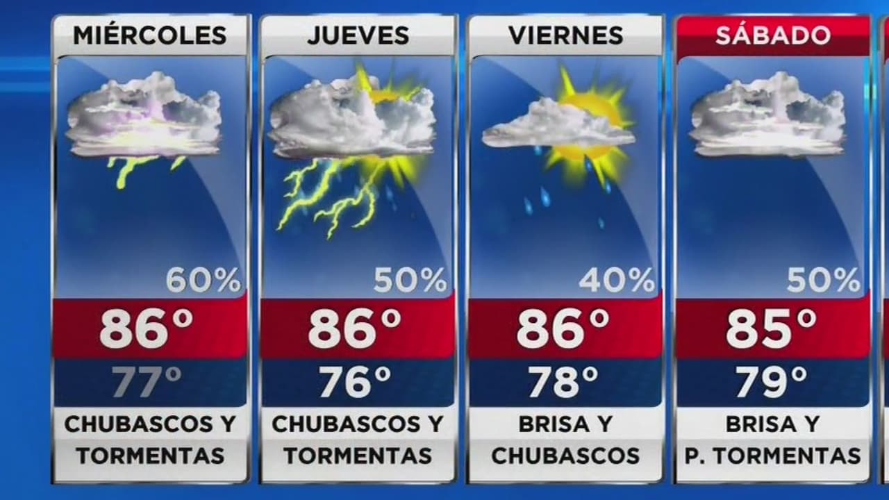 Para hoy hay alta probabilidad de lluvia, aunque se espera que no sea tan fuerte. Las precipitaciones podrían aumentar en horas de la tarde. La temperatura máxima para este martes será de 86 grados.
