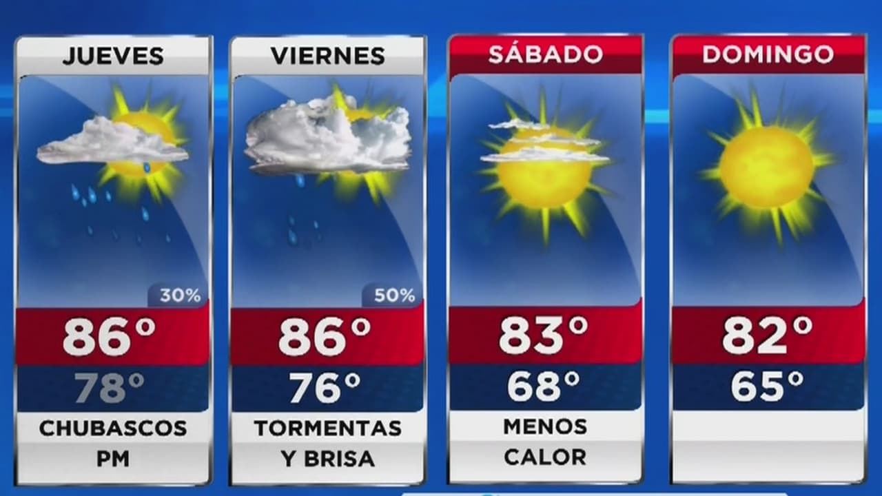 Se espera que la lluvia, con probabilidad de tormenta eléctrica, llegue en horas de la tarde, pero acompañada del calor que se mantiene hace varios días. La temperatura máxima será de 86 grados y la mínima de 78 grados.