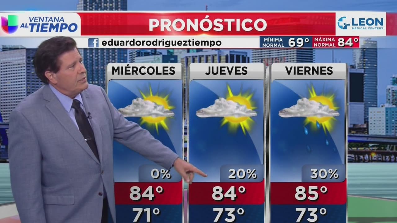 Las temperaturas estarán frescas en horas de la mañana y se espera que alcancen los 84 grados Fahrenheit en Miami y sus alrededores durante el transcurso del día.