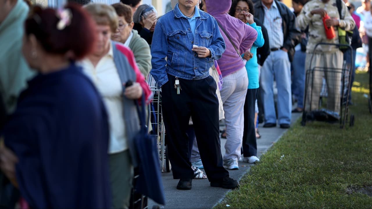Cientos de personas esperan por la entrega de las canastas navideñas de Camacol
