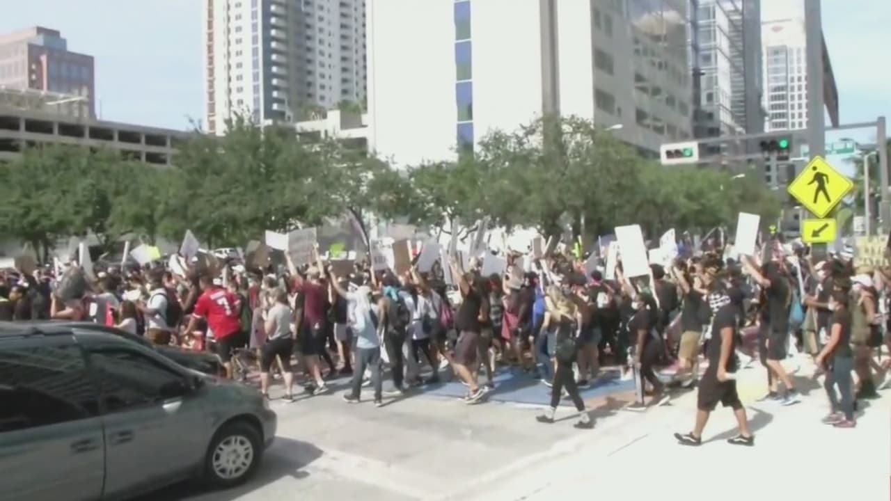 Cientos de personas protestas pacíficamente en Fort Lauderdale por la muerte de George Floyd