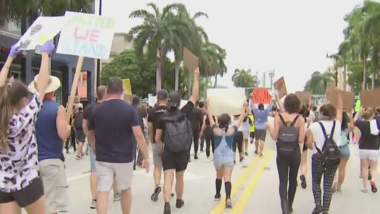 Cientos de personas recorren las calles del Downtown de Miami en una nueva jornada de manifestaciones