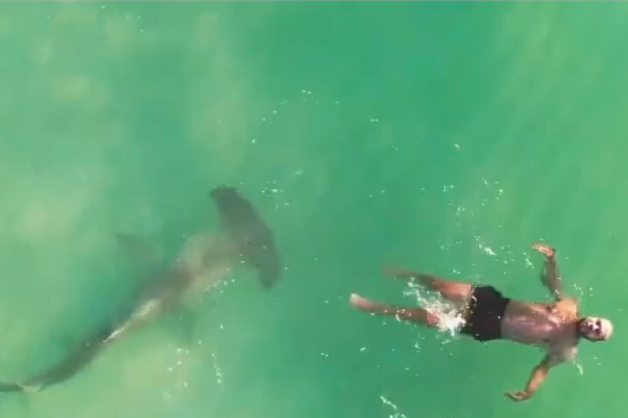 Video Tiburón Martillo ronda a un desprevenido bañista en Miami Beach
