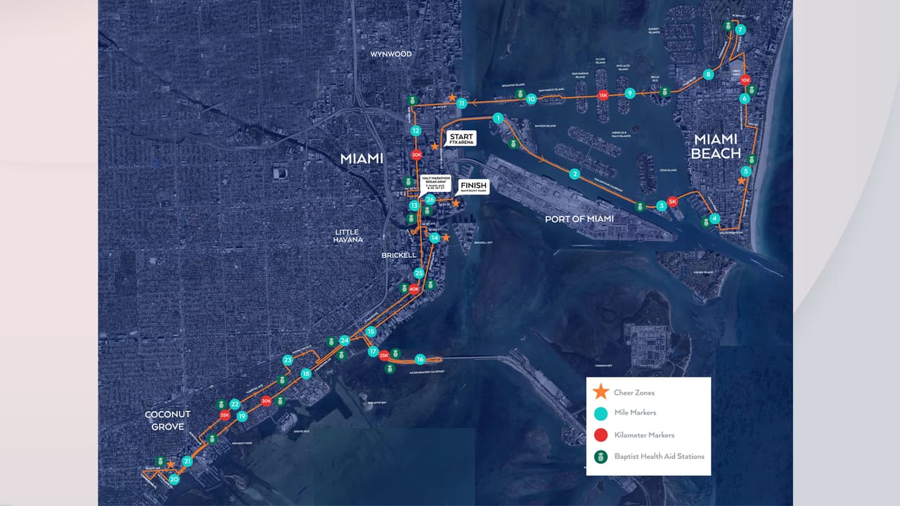 El maratón de Miami 2022 se realiza este domingo, con más de 15 000 participantes de todo el mundo quienes correrán por las calles de Miami desde el American Airlines Arena, por MacArthur Causeway hasta Ocean Drive en Miami Beach a través del distrito de entretenimiento y de regreso, a través de Coconut Grove.