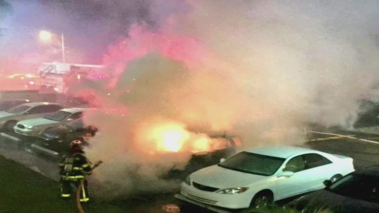 Cinco vehículos resultaron destruidos por incendio en un estacionamiento de Lauderhill