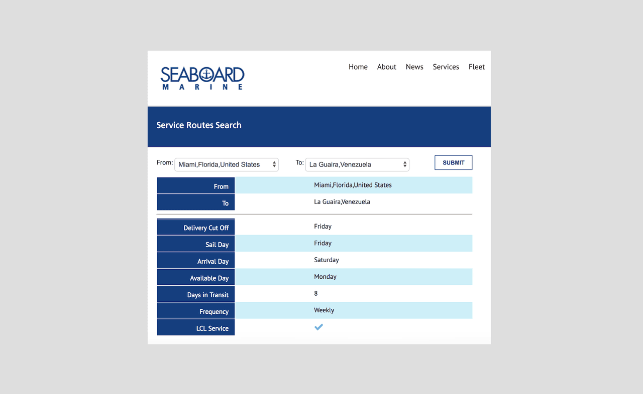 Datos de la empresa naviera Seaboard Marine, que controla casi todo el mercado de barcos de carga que salen desde el Puerto de Miami hacia los países de América Latina, indican que un barco de carga semanal parte desde Miami hacia el Puerto de La Guaira, el principal de Venezuela.