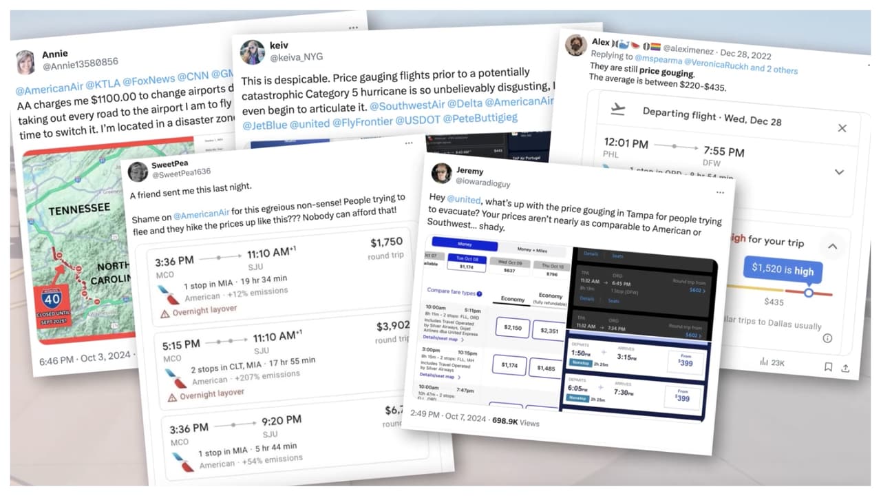 El secretario de Transporte, Pete Buttigieg, advirtió que se toman en serio todas las acusaciones de especulación. “ Estamos siguiendo de cerca los vuelos que llegan y salen de las zonas afectadas por el huracán Milton para asegurarnos de que las aerolíneas no estén cobrando tarifas excesivas”, declaró .