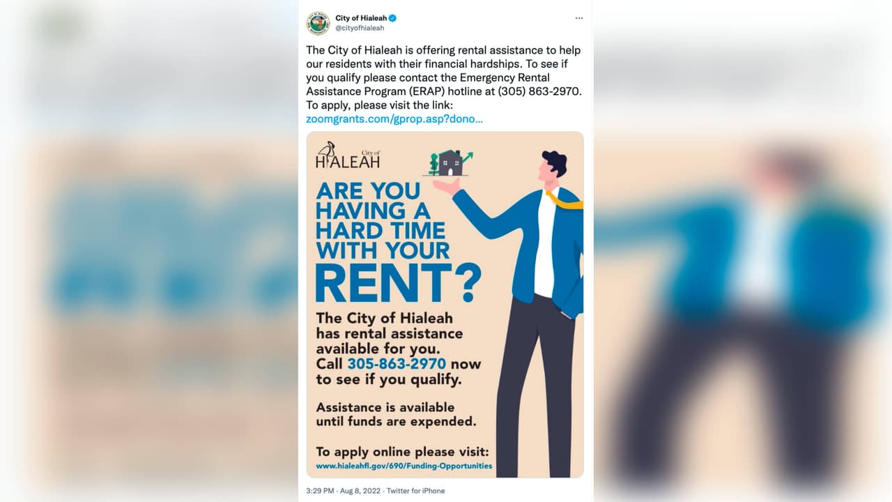Autoridades de la ciudad de Hialeah están anunciando que todavía hay millones de dólares disponibles en fondos federales del programa ERAP, para ayudar a sus residentes con el pago del alquiler.