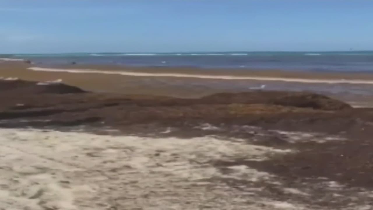 Esta especie de alga marina se ha acumulado en la orilla de la playa, impidiendo que el agua se sienta limpia y dejando un mal olor.