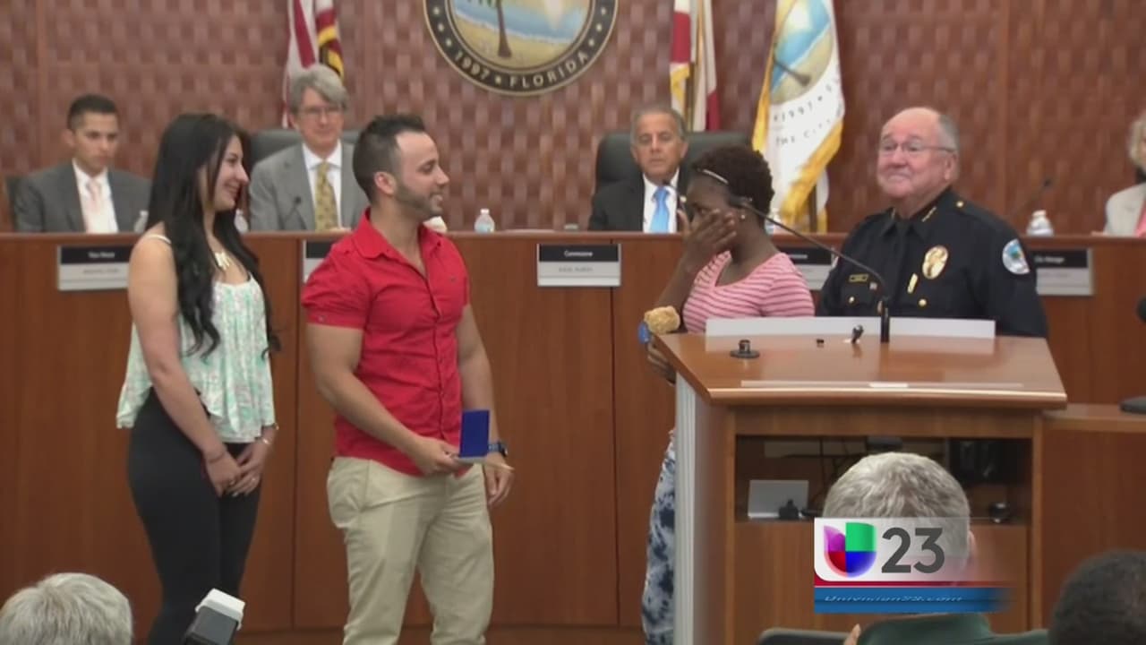 La ciudad de Sunny Isles Beach condecoró a un joven cubano por el heroico acto de salvar la vida de una joven que estaba a punto de ahogarse.