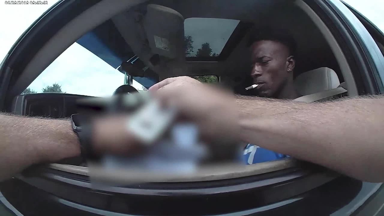 La cámara corporal del agente Aaron Blais captó el momento cuando el sospechoso se niega apagar el vehículo, al momento que el oficial se da cuenta que huele a marihuana. El sujeto arrancó su SUV con el policía colgado en la puerta, hasta que cae al suelo. El hombre fue detenido siete horas después en el condado Seminole.