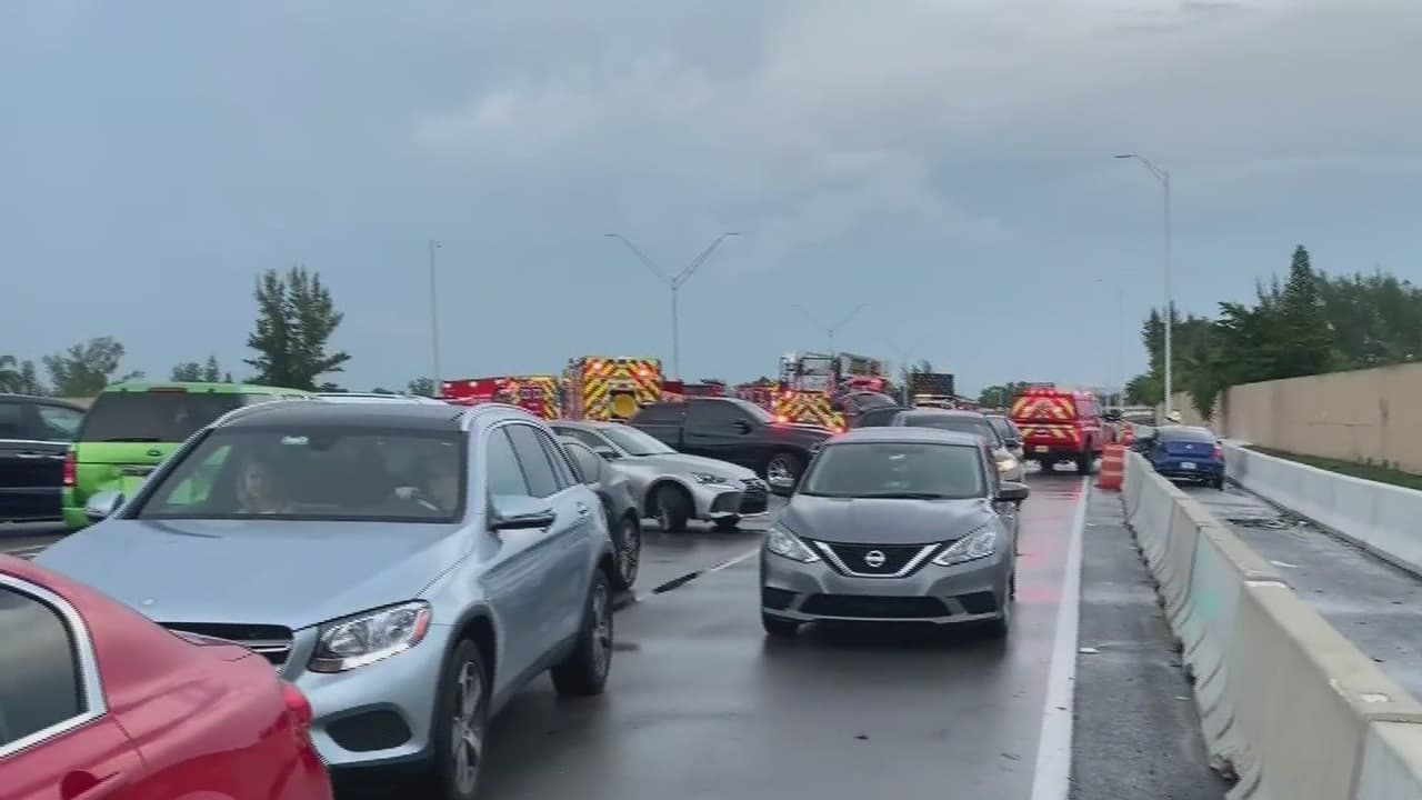 El choque entre el camión y un automóvil causó el cierre de varios carriles en la zona de Deerfield Beach para la limpieza de la gasolina que quedó esparcida en la carretera. El conductor resultó con lesiones leves.