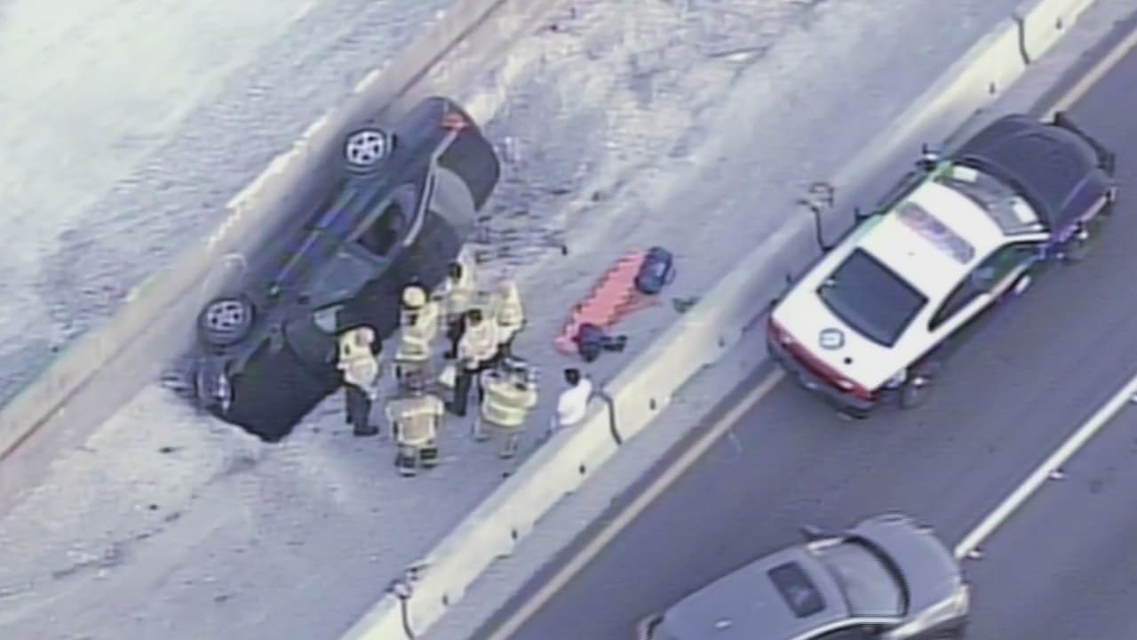 Luego de caer en el hoy, el vehículo impactó la barrera de contención de la avenida en el noroeste de Miami. El sujeto dijo que se quedó dormido al volante.