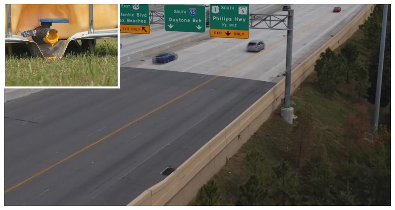 Conductores de Florida están confundidos por una raya amarilla que apareció en la I-95 por más de 20 millas de Jacksonville hasta San Agustine. La línea cruza varios carriles y al parecer se trata de un derrame de pintura de camión de barricadas, pero esto no ha sido comprobado. El Departamento de Transporte de Florida tratará de borrarla.