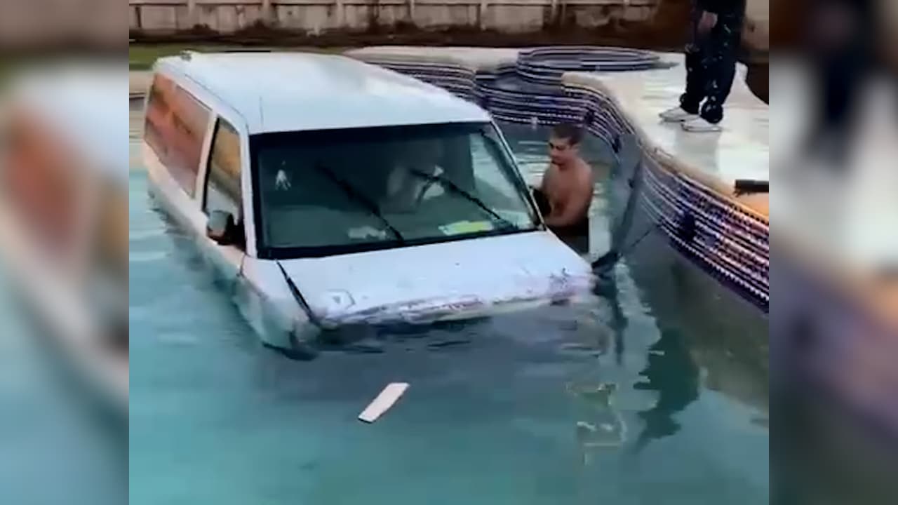 “Estoy hecho leña”: un anciano se enredó manejando su carro y terminó dentro de una piscina