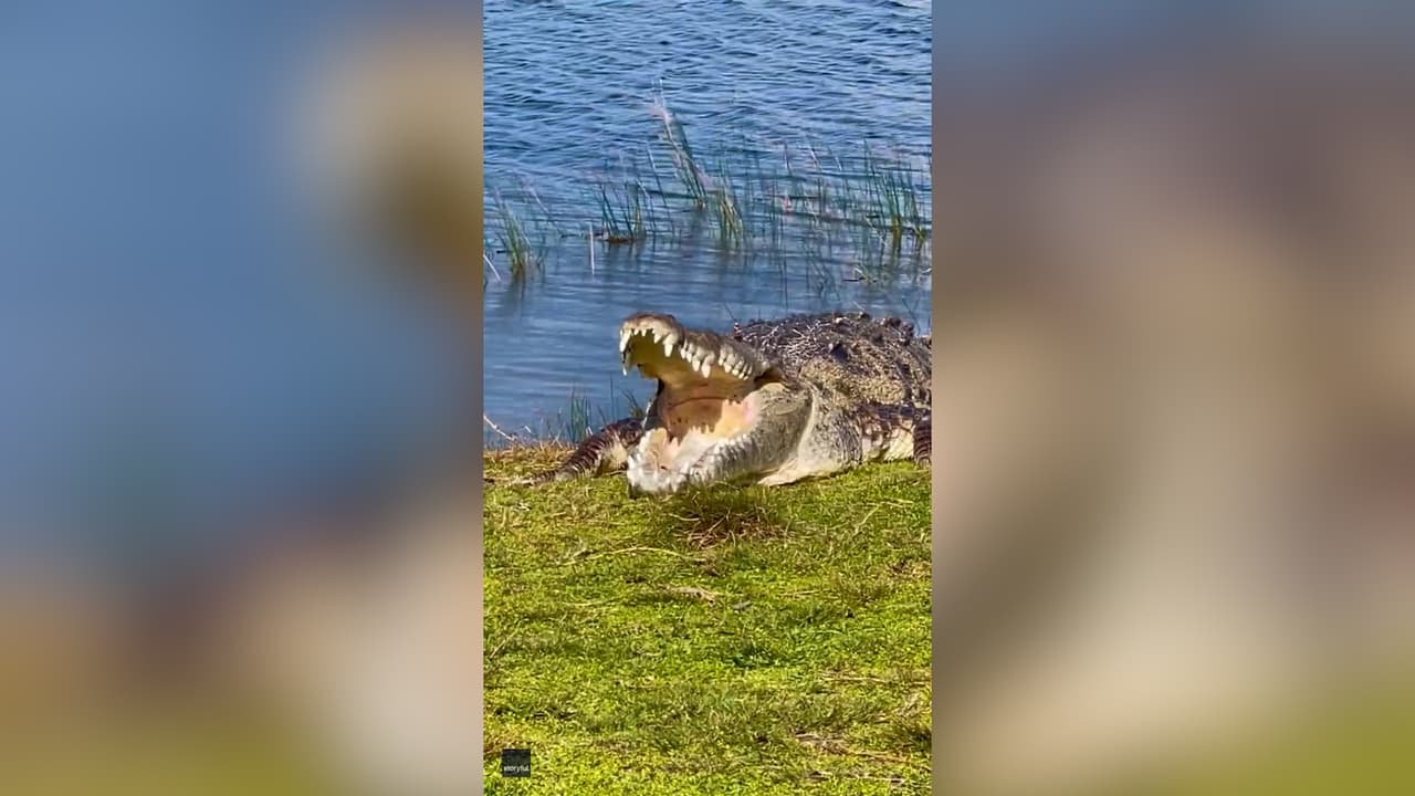 Graban a "Croczilla", el cocodrilo más grande conocido por los lugareños en el Parque Nacional Everglades de Florida. Kymberly Clark logró filmarlo y describe cómo se sorprendió al verlo en la orilla, tomando el sol.