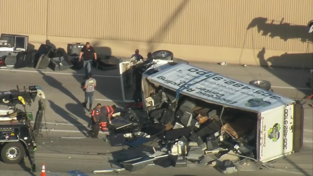 Un camión volcado bloquea varios canales de la autopista Palmetto