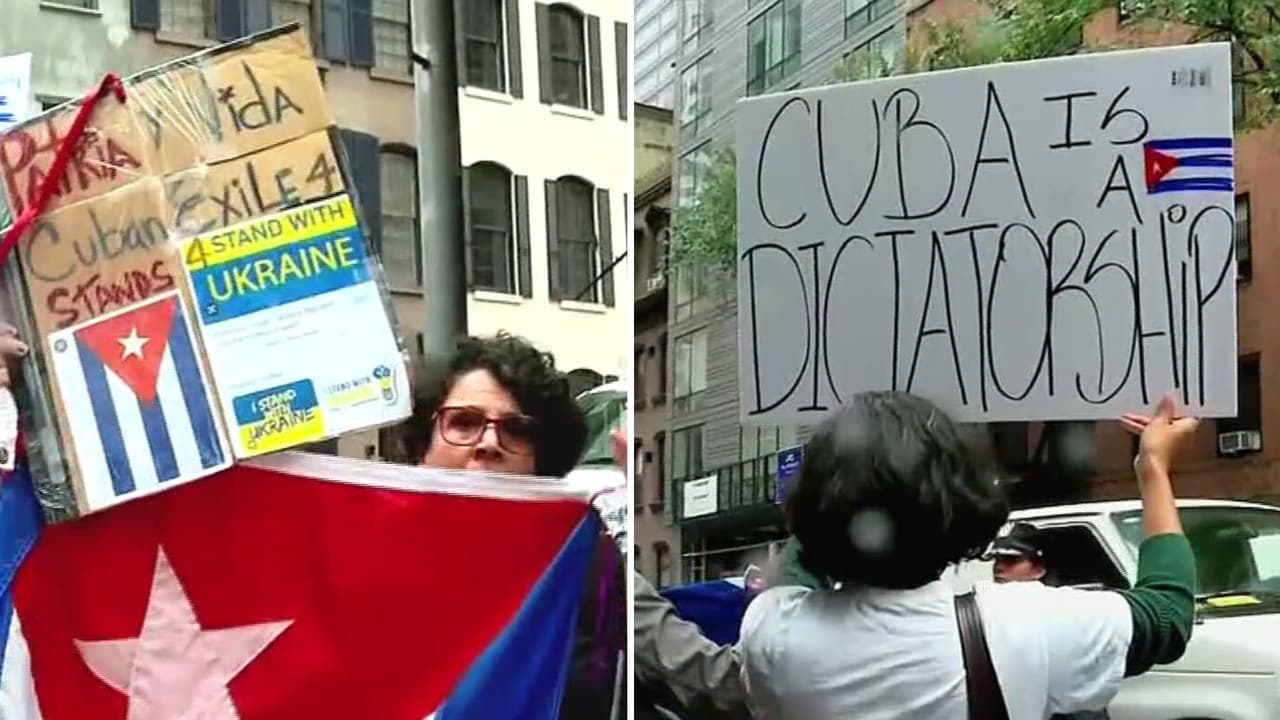 “Cuba es una dictadura”: exiliados protestan por presencia de Díaz-Canel en la ONU